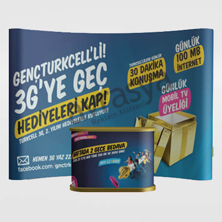 Örümcek Stand baskısı folyo üzerine yapılıp paneller üzerine uygulanır.